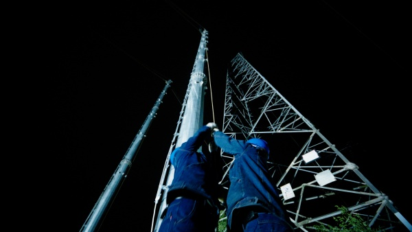 10月21日凌晨4時(shí)10分,在新建的河南省平頂山至漯河、周口高速鐵路電力線路遷改工程220千伏Ⅱ英普線停電施工現(xiàn)場,漯河市供電公司作業(yè)人員正在進(jìn)行跨越京廣高鐵導(dǎo)線展放工作。
