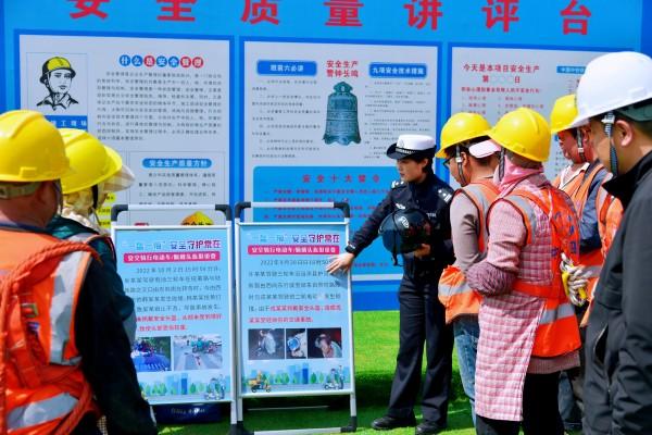 活動中,民警通過現(xiàn)場宣講交通道路安全法、教授電瓶車頭盔正確佩戴方法、模擬酒駕述危害、講述典型案例防詐騙等環(huán)節(jié),為重點(diǎn)工程項(xiàng)目農(nóng)民工上了一堂精彩生動的安全、防詐騙教育課。