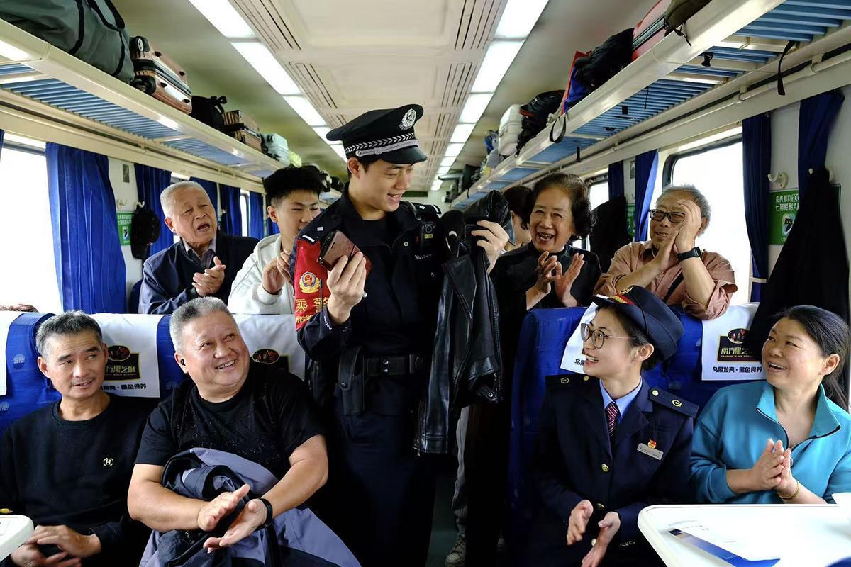 10月28日,上海鐵路公安局杭州公安處乘警支隊聯(lián)合杭州客運段杭蘭車隊在T112列車上向老年旅客講解乘車安全知識。