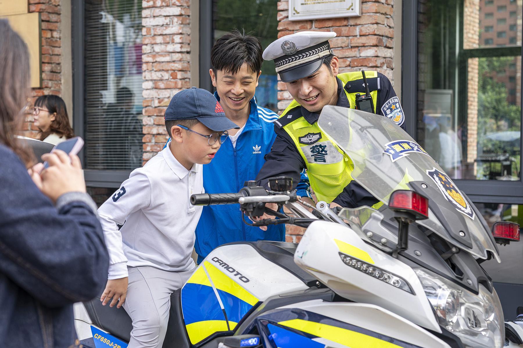 11月1日,上海市公安局崇明分局交管支隊在轄區(qū)光明田園景區(qū)舉辦警營開放日活動,向群眾普及交通安全知識。