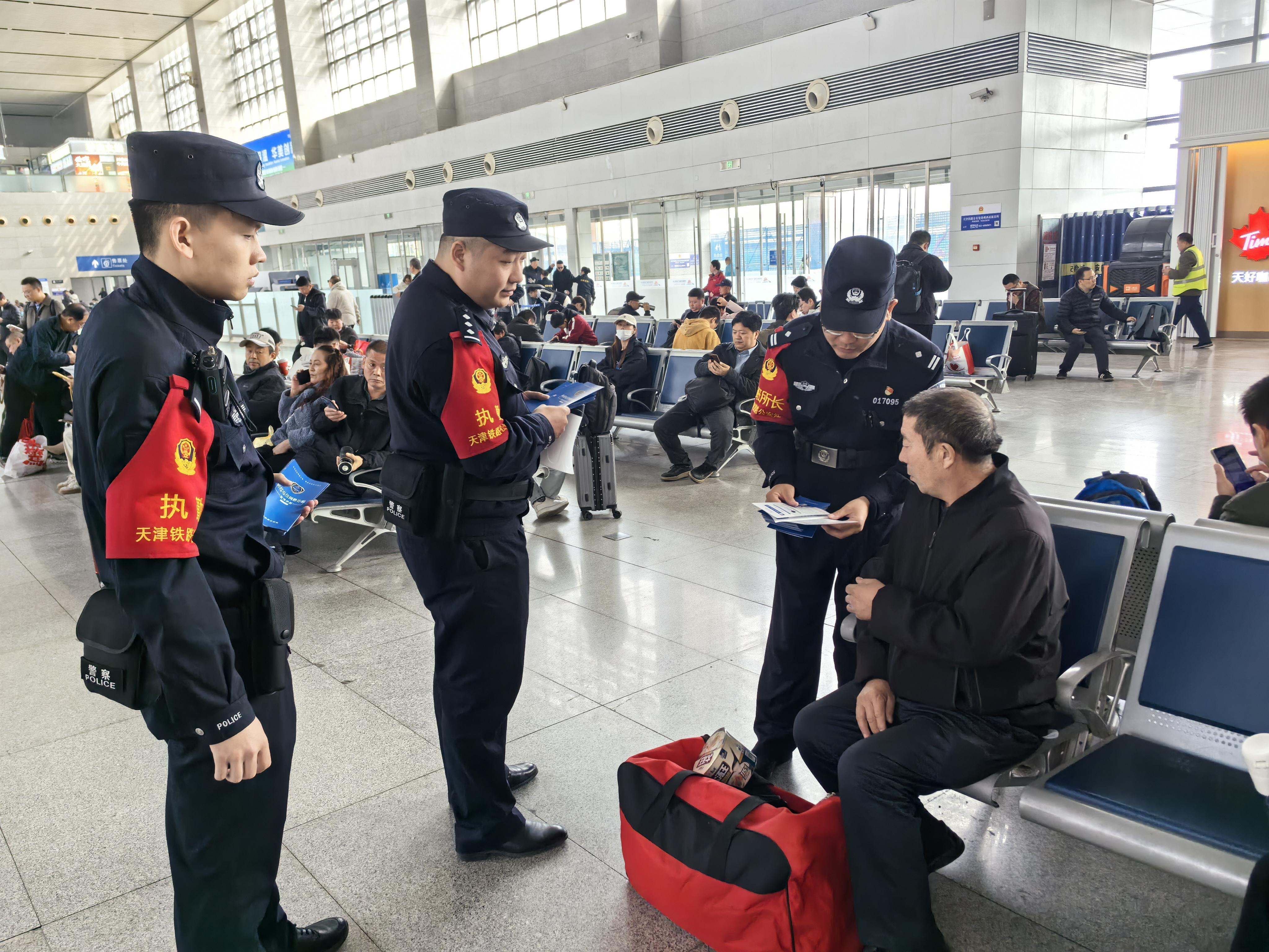 一站一策精準(zhǔn)宣傳。近日,各鐵路派出所聯(lián)合鐵路內(nèi)部單位在管內(nèi)大站開展反詐宣傳,針對大學(xué)生群體,重點宣傳“刷單”“冒充客服退款”等類型案件預(yù)防對策;針對轄區(qū)商戶,著重講解“貸款類”“投資理財類”詐騙防范方法;針對老年人,以養(yǎng)老詐騙宣防為重點,做到精準(zhǔn)化宣傳。