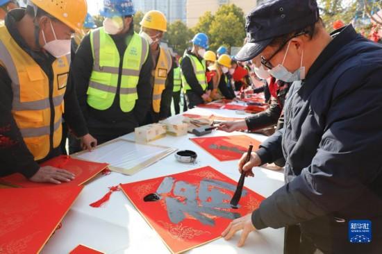 春節(jié)臨近,多地組織書法志愿者走進(jìn)社區(qū)、工地等場所,為人們書寫春聯(lián)和福字,迎接春節(jié)的到來。