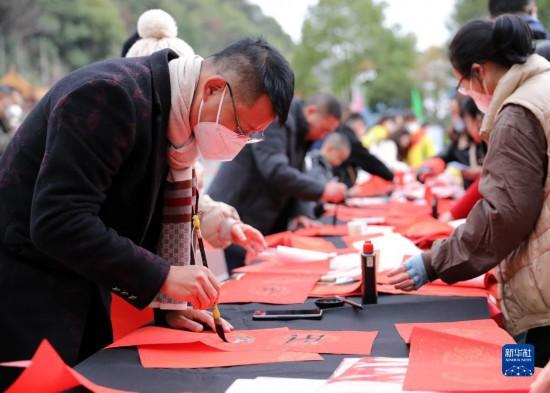 春節(jié)臨近,多地組織書法志愿者走進(jìn)社區(qū)、工地等場所,為人們書寫春聯(lián)和福字,迎接春節(jié)的到來。