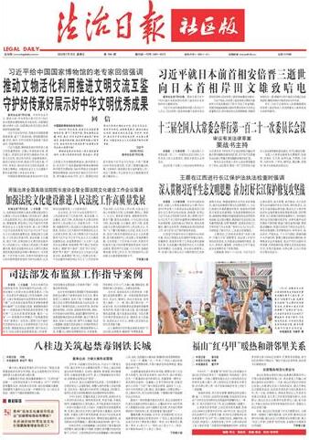 本報訊 記者趙婕 為充分發(fā)揮司法行政職能作用,指導(dǎo)和規(guī)范司法行政工作,更好滿足人民群眾的法律服務(wù)需求,7月8日,司法部發(fā)布4篇監(jiān)獄工作指導(dǎo)案例,分別是“上海市青浦監(jiān)獄沖動型罪犯朱某的矯正個案”“山東省泰安監(jiān)獄罪犯李某精準(zhǔn)教育轉(zhuǎn)化案例”“眾志成城化危情 真情教轉(zhuǎn)挽靈魂——西青監(jiān)獄對罪犯楊某的管理和干預(yù)實例”“讓法治思維普照高墻‘最后一公里’——探索集中關(guān)押模式下的限減罪犯‘四步’教育法”,旨在深入貫徹習(xí)近平新時代中國特色社會主義思想特別是習(xí)近平法治思想,增強(qiáng)監(jiān)獄執(zhí)法透明度,提升執(zhí)法公信力,向社會展示監(jiān)獄教育改造工作成果,為指導(dǎo)規(guī)范全國監(jiān)獄工作提供可推廣、可借鑒的典型經(jīng)驗。