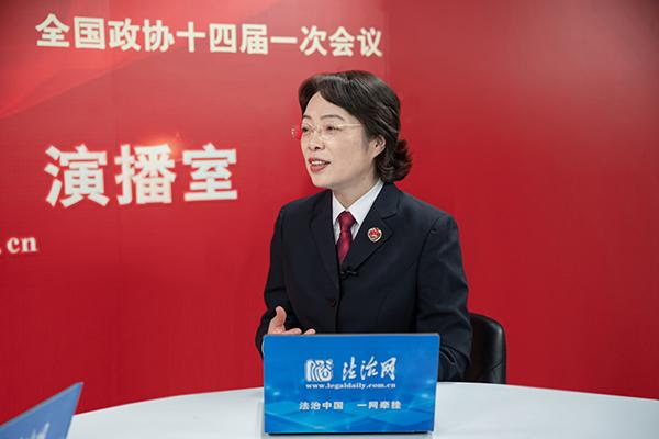 圖為全國(guó)政協(xié)委員、最高人民檢察院黨組成員、政治部主任潘毅琴在法治網(wǎng)接受采訪。 韓毅 攝