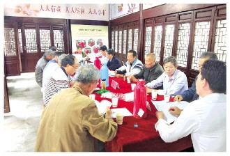 圖為溧陽(yáng)八字橋村“百姓議事堂”的理事們就村廣場(chǎng)改造事宜進(jìn)行議事討論。 朱優(yōu)惠 攝