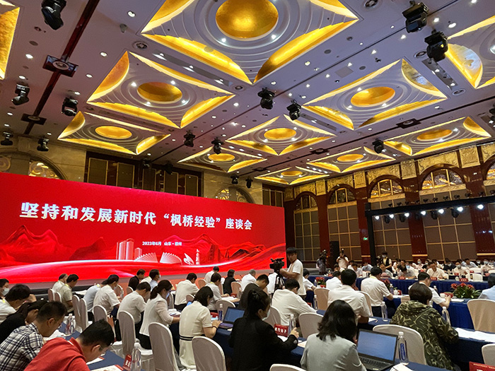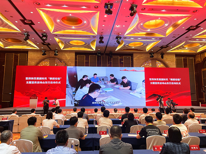 6月20日上午,堅(jiān)持和發(fā)展新時(shí)代“楓橋經(jīng)驗(yàn)”主題宣傳活動(dòng)山東行正式啟動(dòng)。圖為活動(dòng)現(xiàn)場(chǎng)。(方芳 攝)