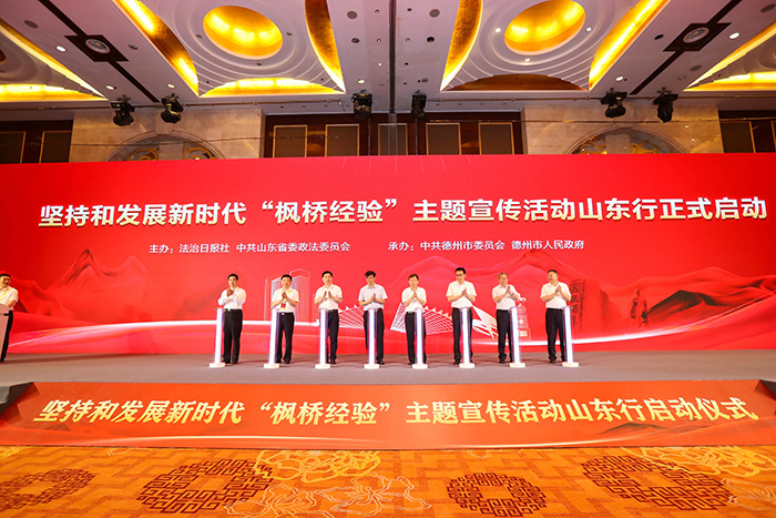 6月20日,堅(jiān)持和發(fā)展新時(shí)代“楓橋經(jīng)驗(yàn)”主題宣傳活動(dòng)山東行暨座談會(huì)在山東省德州市舉行。山東省委政法委分管日常工作的副書記孫成良,德州市委副書記、市長朱開國,法制日?qǐng)?bào)社黨委副書記周秉鍵出席活動(dòng)并致辭。