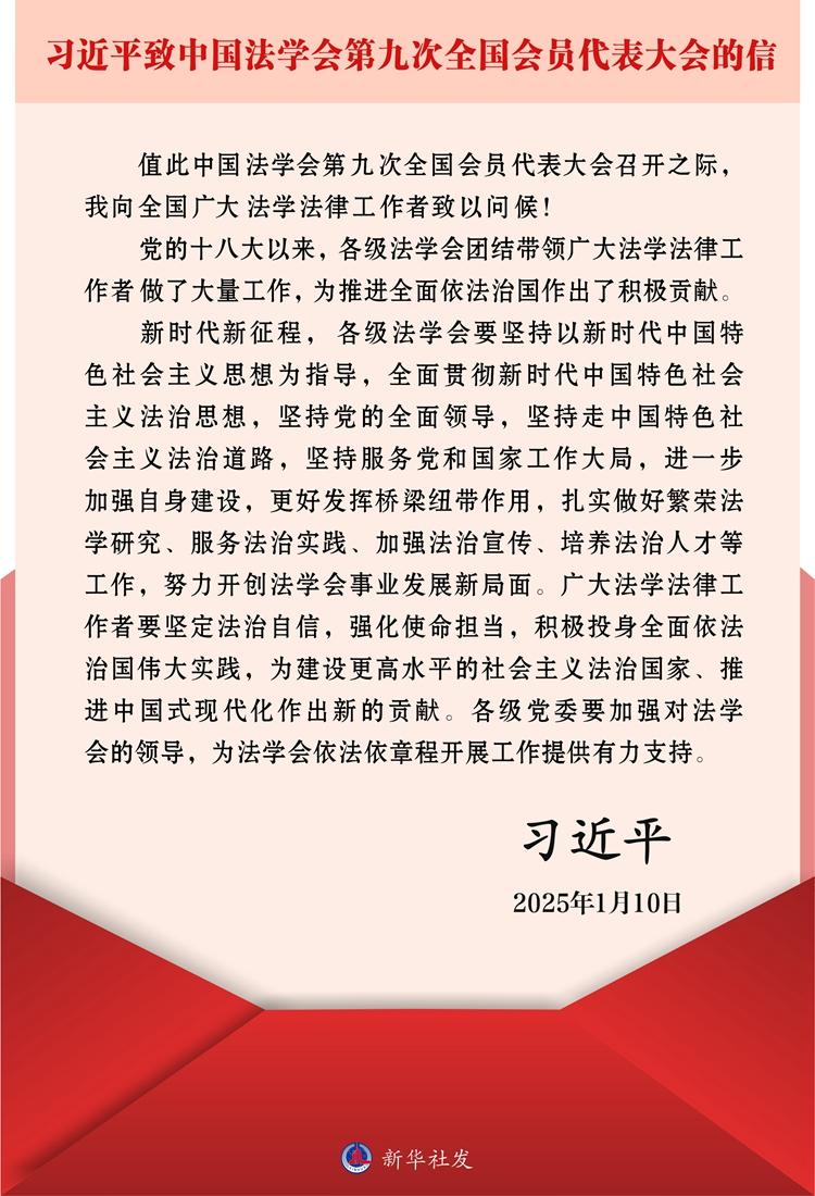 習(xí)近平致信中國(guó)法學(xué)會(huì)第九次全國(guó)會(huì)員代表大會(huì)強(qiáng)調(diào)