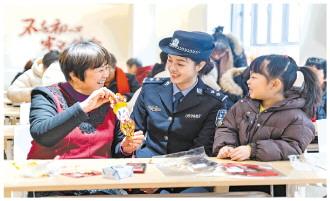 圖為上海市公安局崇明分局城橋派出所民警將反詐宣傳與猜燈謎結(jié)合,讓群眾在寓教于樂中學(xué)到反詐知識。 沈群 攝