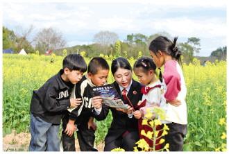 圖為龍巖市長汀縣檢察干警來到田間地頭為留守兒童普及法律知識。 劉學煒 攝
