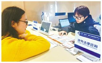 圖為企業(yè)經(jīng)營(yíng)人員在江蘇(南京)涉外法律服務(wù)中心咨詢(xún)涉外法律事務(wù)。