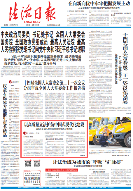 2025年,全國人大及其常委會(huì)全面貫徹黨的二十大及二十屆歷次全會(huì)精神,緊扣黨和國家工作大局,聚焦高質(zhì)量發(fā)展、民生保障、國家安全、涉外法治等關(guān)鍵領(lǐng)域精準(zhǔn)發(fā)力,深入推進(jìn)科學(xué)立法、民主立法、依法立法,統(tǒng)籌立改廢釋纂,以高質(zhì)量立法持續(xù)完善以憲法為核心的中國特色社會(huì)主義法律體系。