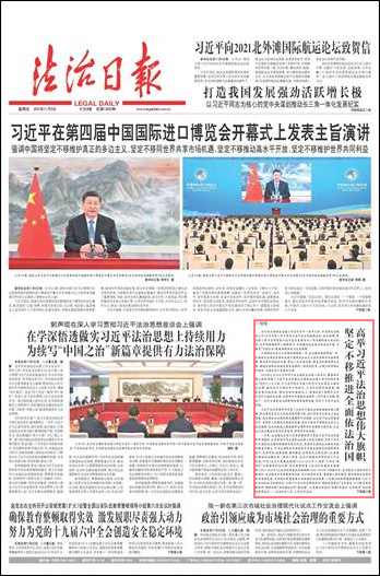 在中央全面依法治國工作會議召開一周年之際,中央依法治國辦11月4日召開深入學習貫徹習近平法治思想座談會。會議強調(diào),要把深入學習宣傳貫徹習近平法治思想作為一項長期的重大政治任務,在學深悟透做實上持續(xù)用力,加快建設良法善治的法治中國,為續(xù)寫“中國之治”新篇章提供有力法治保障。