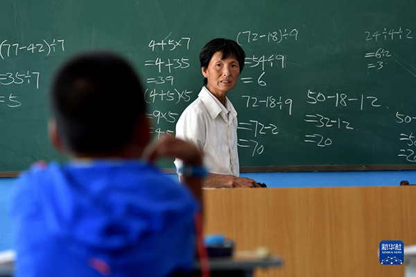 劉桂珍在山西省代縣王家會小學上數(shù)學課(資料照片)。新華社記者 詹彥 攝