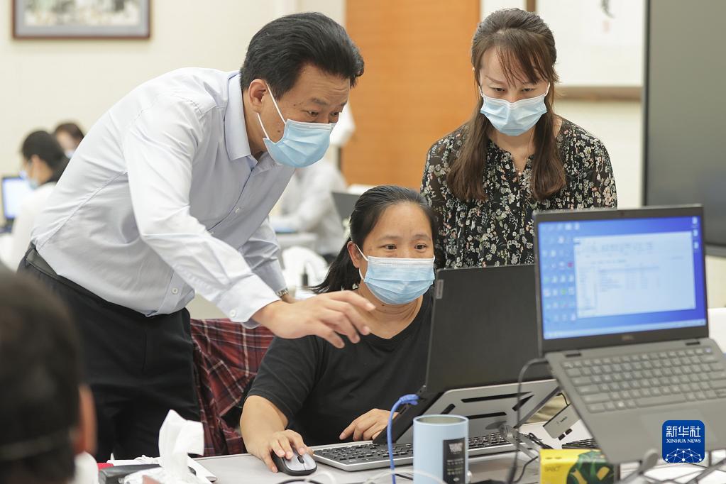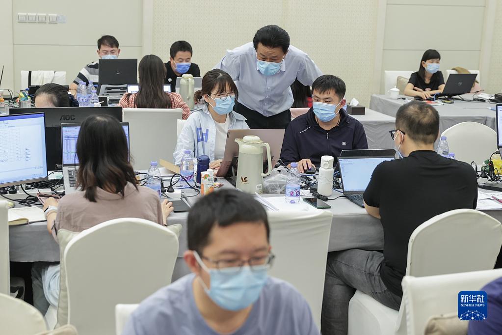 李群(左)在北京指導流調溯源數據分析工作(2022年9月18日攝)。新華社記者 張玉薇 攝