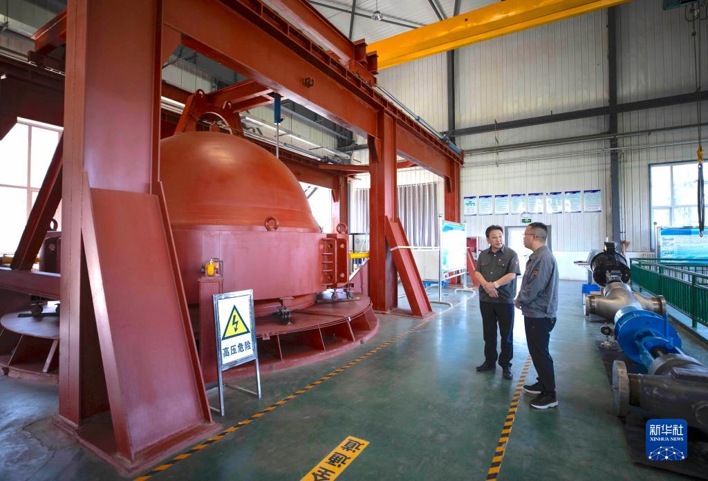 在位于寧夏吳忠市的吳忠儀表有限責(zé)任公司自動(dòng)化產(chǎn)業(yè)園數(shù)字化裝配車間內(nèi),馬玉山(右)與技術(shù)人員交流(9月12日攝)。 新華社記者 楊植森 攝