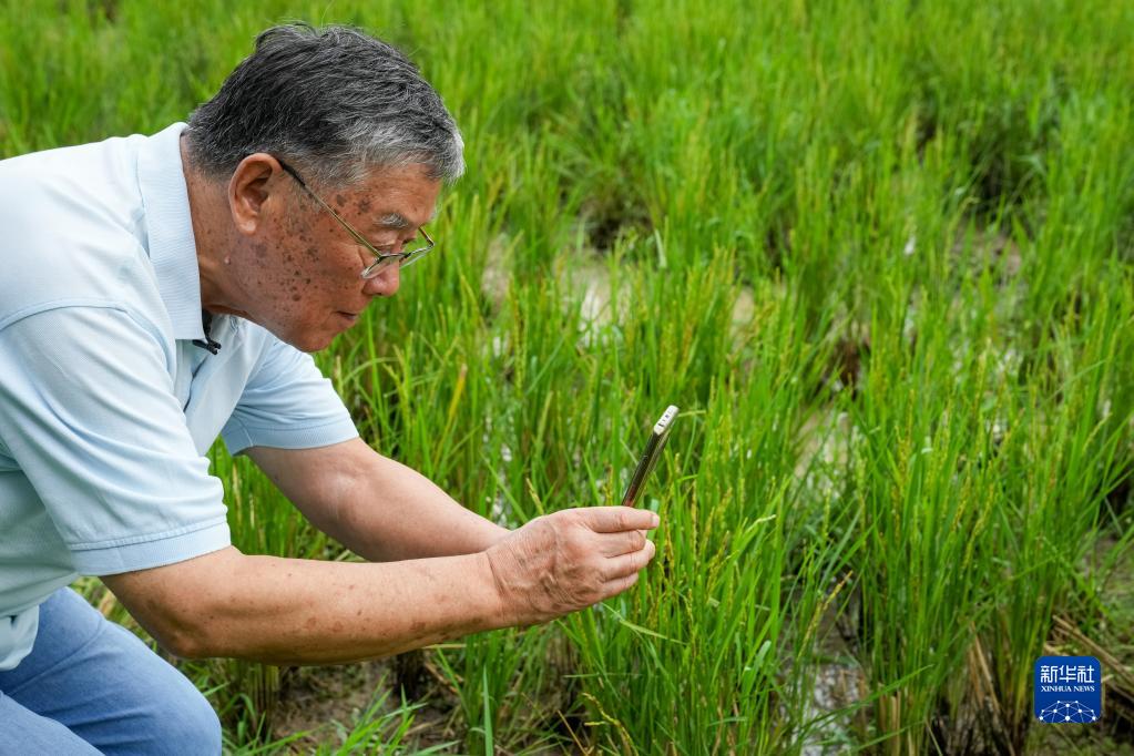 趙亞夫在江蘇省句容市天王鎮(zhèn)戴莊村查看水稻長勢(2022年9月9日攝)。新華社記者 李博 攝
