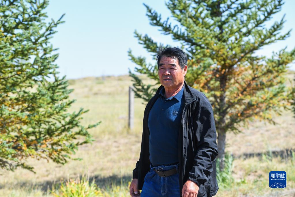 廷·巴特爾在查看自家草場(9月8日攝)。新華社記者 劉磊 攝