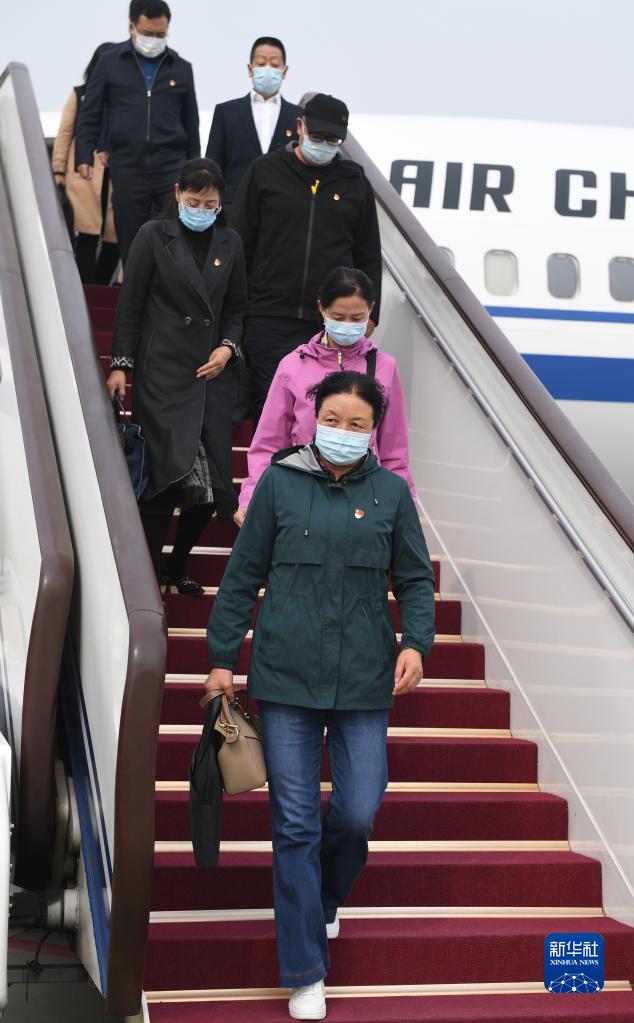 10月13日,來(lái)自青海省的黨的二十大代表乘飛機(jī)抵達(dá)北京首都國(guó)際機(jī)場(chǎng)。新華社記者 張豪夫 攝