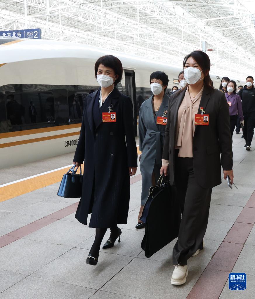 10月13日,來(lái)自內(nèi)蒙古自治區(qū)的黨的二十大代表乘高鐵抵達(dá)北京北站。新華社記者 張玉薇 攝