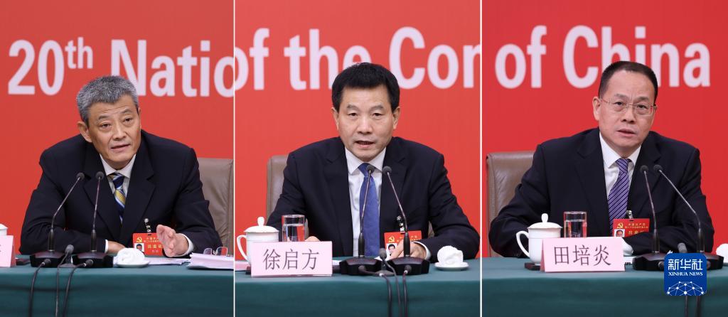 10月17日,中國(guó)共產(chǎn)黨第二十次全國(guó)代表大會(huì)新聞中心舉行記者招待會(huì),請(qǐng)中央紀(jì)委副書(shū)記、國(guó)家監(jiān)委副主任肖培,中央組織部副部長(zhǎng)徐啟方,中央政策研究室副主任田培炎介紹堅(jiān)定不移全面從嚴(yán)治黨,深入推進(jìn)新時(shí)代黨的建設(shè)新的偉大工程有關(guān)情況,并回答記者提問(wèn)(拼版照片)。