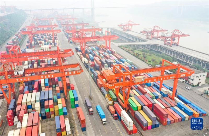 這是10月16日拍攝的重慶果園港(無人機(jī)照片)。新華社記者 王全超 攝