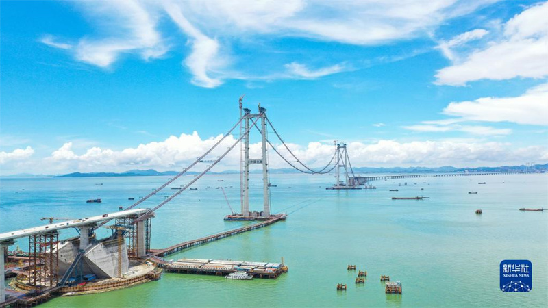 這是深中通道關(guān)鍵控制性工程伶仃洋大橋的建設(shè)現(xiàn)場(10月16日攝,無人機(jī)照片)。新華社發(fā)(張政 攝)