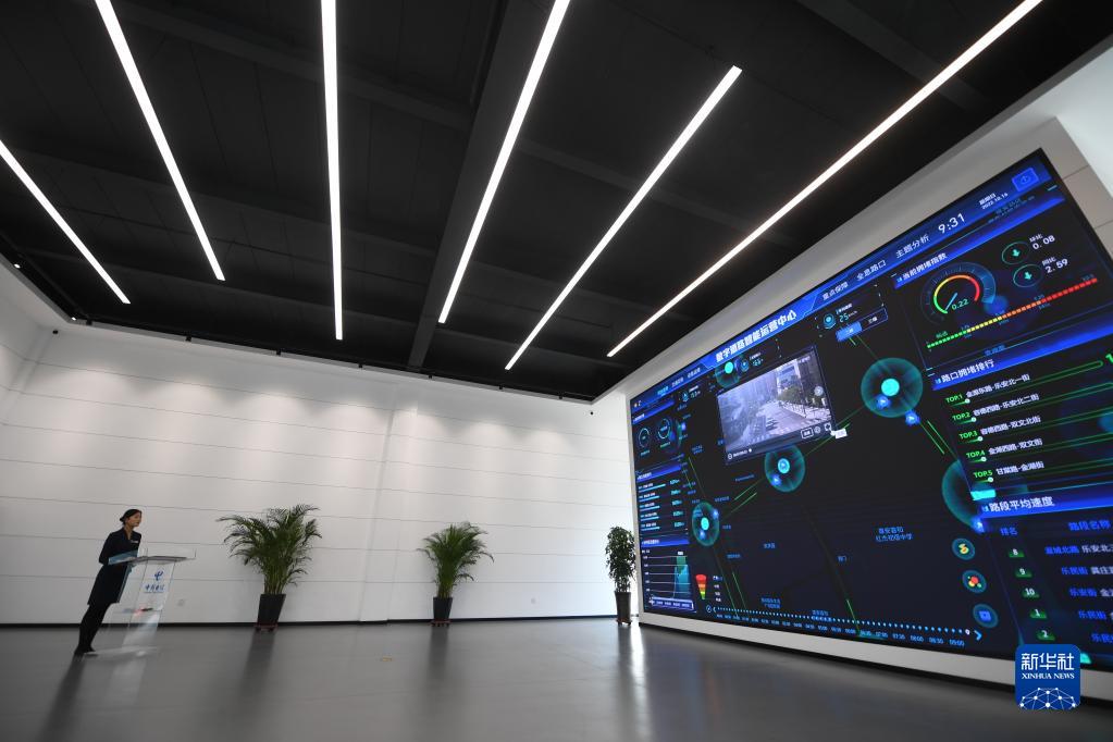 10月16日,河北雄安新區(qū)中國電信智慧城市產(chǎn)業(yè)園工作人員展示數(shù)字道路運(yùn)營系統(tǒng)。新華社記者 朱旭東 攝