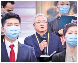 10月22日,中國(guó)共產(chǎn)黨第二十次全國(guó)代表大會(huì)閉幕會(huì)在北京人民大會(huì)堂舉行。圖為在閉幕會(huì)后的“黨代表通道”上,本報(bào)記者提問(wèn)。 本報(bào)記者 王建軍 攝
