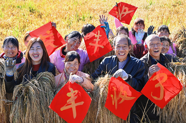 10月11日,蘇陜協(xié)作項目陜西省洛南縣旱改水水稻種植示范園培育種植的150畝優(yōu)良水稻開始收割。新華社記者 陶明 攝