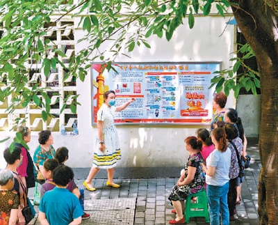 6月1日,在重慶市渝中區(qū)朝天門街道白象街社區(qū),街道司法所的工作人員正在向居民宣講《中華人民共和國民法典》。張錦輝攝(人民視覺)
