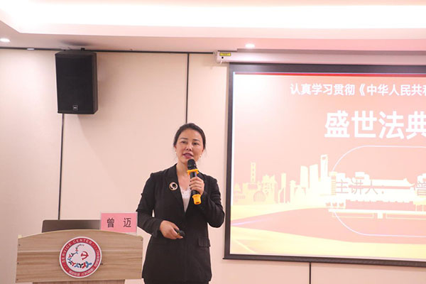 為充分認(rèn)識(shí)頒布實(shí)施民法典的重大意義,更好地推動(dòng)民法典實(shí)施,7月24日下午,由深圳市社會(huì)工作者黨委主辦,深圳市春雨社會(huì)工作服務(wù)社黨支部協(xié)辦的《民法典》專題黨課在福田CBD黨群中心開展。黨課邀請(qǐng)了深圳市第六屆人大代表、深圳市人大常委會(huì)法律委員會(huì)委員、深圳市第十屆律師協(xié)會(huì)副會(huì)長(zhǎng)曾邁主講。深圳社工黨委書記王越主持,社工黨員、入黨積極分子等50余人參加。