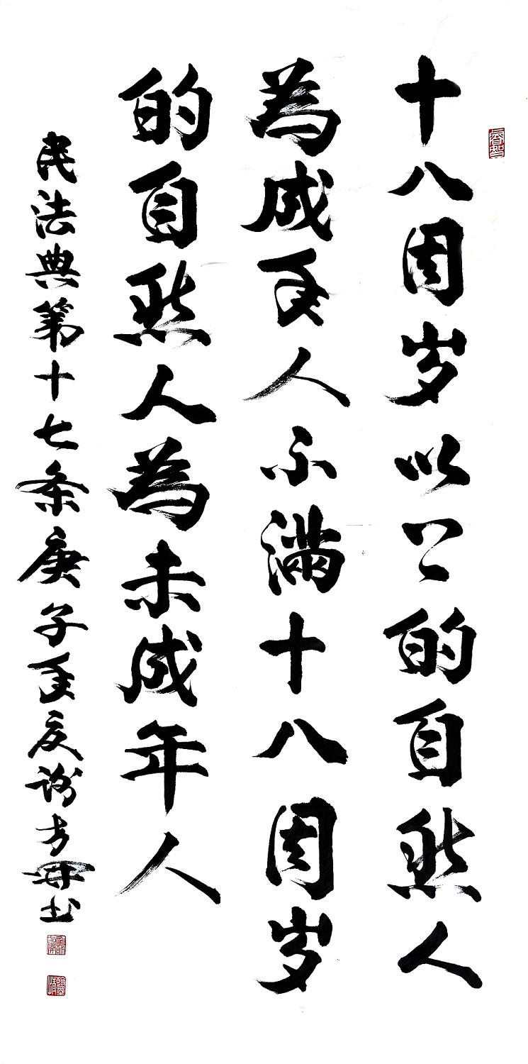 民法典第十七條 十八周歲以上的自然人為成年人。不滿十八周歲的自然人為未成年人。
