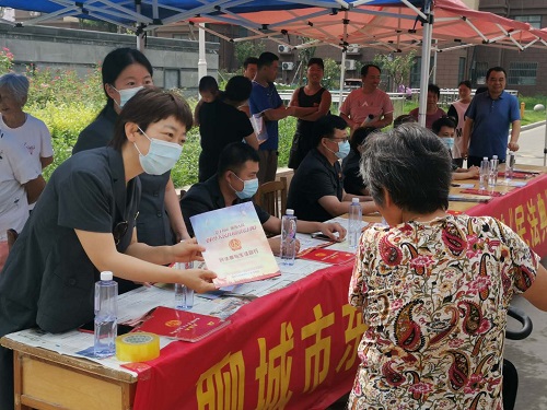 為深入推進民法典學習宣傳,讓民法典真正成為家喻戶曉的“社會百科全書”,7月29日,山東省聊城市東昌府區(qū)人民法院組織民商事法官、執(zhí)行法官十余人走進姚莊小區(qū),開展民法典宣傳活動。