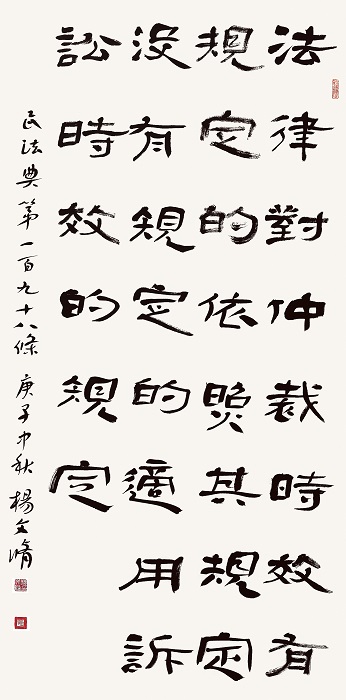 “書·法”活動(dòng)以書寫《中華人民共和國(guó)民法典》法條開筆,未來將對(duì)準(zhǔn)更多的法律。