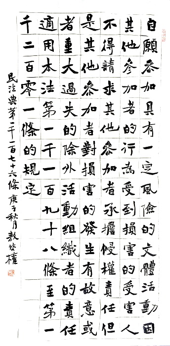 “書·法”活動(dòng)以書寫《中華人民共和國(guó)民法典》法條開筆,未來將對(duì)準(zhǔn)更多的法律。