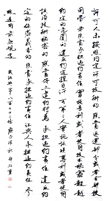 民法典第八百七十二條 許可人未按照約定許可技術(shù)的,應(yīng)當(dāng)返還部分或者全部使用費(fèi),并應(yīng)當(dāng)承擔(dān)違約責(zé)任;實(shí)施專(zhuān)利或者使用技術(shù)秘密超越約定的范圍的,違反約定擅自許可第三人實(shí)施該項(xiàng)專(zhuān)利或者使用該項(xiàng)技術(shù)秘密的,應(yīng)當(dāng)停止違約行為,承擔(dān)違約責(zé)任;違反約定的保密義務(wù)的,應(yīng)當(dāng)承擔(dān)違約責(zé)任。