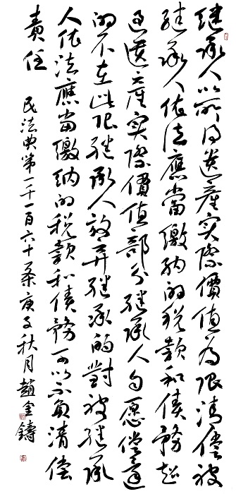 趙金鑄,中國(guó)書(shū)法家協(xié)會(huì)會(huì)員,中國(guó)檢察官文聯(lián)書(shū)畫(huà)協(xié)會(huì)理事,甘肅省定西市渭源縣人民檢察院黨組書(shū)記、檢察長(zhǎng),甘肅省書(shū)法家協(xié)會(huì)草書(shū)委員會(huì)委員,定西市書(shū)法家協(xié)會(huì)副主席,定西檢察官文聯(lián)副主席兼書(shū)法家協(xié)會(huì)主席。