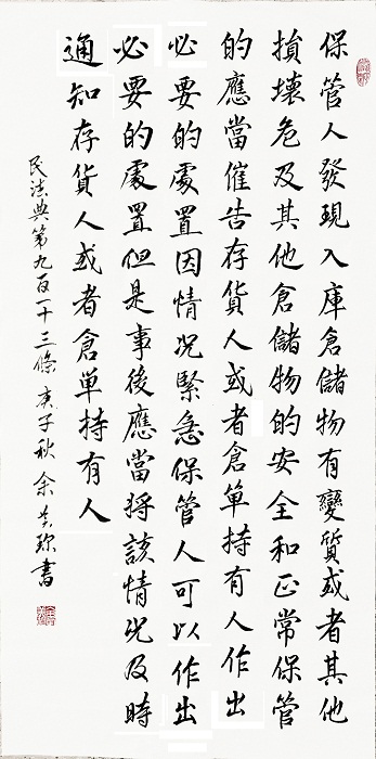 民法典第九百一十三條 保管人發(fā)現(xiàn)入庫倉儲物有變質(zhì)或者其他損壞,危及其他倉儲物的安全和正常保管的,應(yīng)當(dāng)催告存貨人或者倉單持有人作出必要的處置。因情況緊急,保管人可以作出必要的處置;但是,事后應(yīng)當(dāng)將該情況及時通知存貨人或者倉單持有人。
