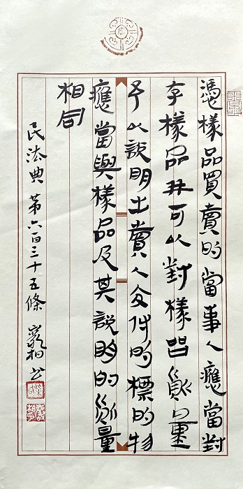 民法典第六百三十五條 憑樣品買賣的當(dāng)事人應(yīng)當(dāng)封存樣品,并可以對(duì)樣品質(zhì)量予以說(shuō)明。出賣人交付的標(biāo)的物應(yīng)當(dāng)與樣品及其說(shuō)明的質(zhì)量相同。