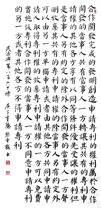 民法典第八百六十條 合作開發(fā)完成的發(fā)明創(chuàng)造,申請(qǐng)專利的權(quán)利屬于合作開發(fā)的當(dāng)事人共有;當(dāng)事人一方轉(zhuǎn)讓其共有的專利申請(qǐng)權(quán)的,其他各方享有以同等條件優(yōu)先受讓的權(quán)利。但是,當(dāng)事人另有約定的除外。