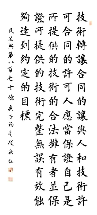 民法典第八百七十條 技術(shù)轉(zhuǎn)讓合同的讓與人和技術(shù)許可合同的許可人應(yīng)當(dāng)保證自己是所提供的技術(shù)的合法擁有者,并保證所提供的技術(shù)完整、無(wú)誤、有效,能夠達(dá)到約定的目標(biāo)。