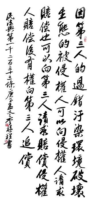 書法作品入展首屆全國(guó)法治文化書法展等。