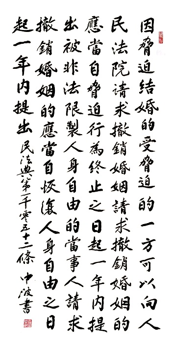民法典第一千零五十二條 因脅迫結(jié)婚的,受脅迫的一方可以向人民法院請求撤銷婚姻。