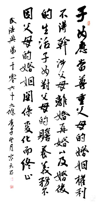 民法典第一千零六十九條 子女應(yīng)當尊重父母的婚姻權(quán)利,不得干涉父母離婚、再婚以及婚后的生活。子女對父母的贍養(yǎng)義務(wù),不因父母的婚姻關(guān)系變化而終止。