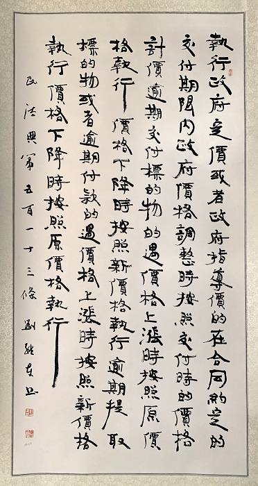 民法典第五百一十三條 執(zhí)行政府定價(jià)或者政府指導(dǎo)價(jià)的,在合同約定的交付期限內(nèi)政府價(jià)格調(diào)整時(shí),按照交付時(shí)的價(jià)格計(jì)價(jià)。逾期交付標(biāo)的物的,遇價(jià)格上漲時(shí),按照原價(jià)格執(zhí)行;價(jià)格下降時(shí),按照新價(jià)格執(zhí)行。逾期提取標(biāo)的物或者逾期付款的,遇價(jià)格上漲時(shí),按照新價(jià)格執(zhí)行;價(jià)格下降時(shí),按照原價(jià)格執(zhí)行。