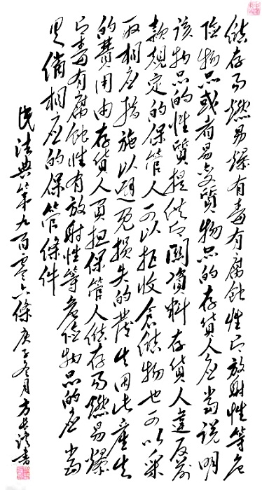 民法典第九百零六條 儲(chǔ)存易燃、易爆、有毒、有腐蝕性、有放射性等危險(xiǎn)物品或者易變質(zhì)物品的,存貨人應(yīng)當(dāng)說(shuō)明該物品的性質(zhì),提供有關(guān)資料。