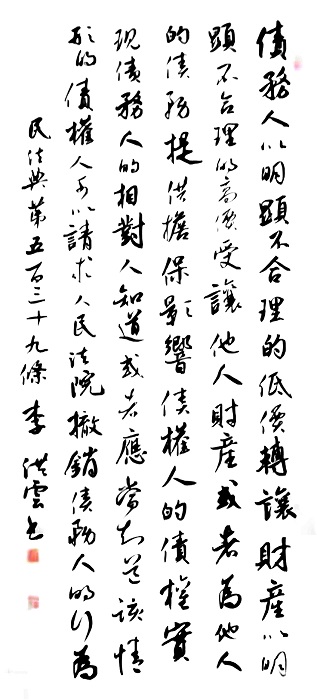 民法典第五百三十九條 債務人以明顯不合理的低價轉讓財產、以明顯不合理的高價受讓他人財產或者為他人的債務提供擔保,影響債權人的債權實現(xiàn),債務人的相對人知道或者應當知道該情形的,債權人可以請求人民法院撤銷債務人的行為。