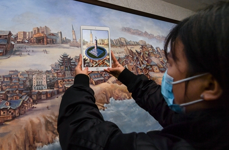 近年來(lái),重慶紅巖革命紀(jì)念館積極推動(dòng)革命文物活化利用,讓革命文物資源融入到當(dāng)代文化生產(chǎn)和生活方式中,讓紅巖革命文物“活”起來(lái)。圖為工作人員在重慶紅巖革命紀(jì)念館“紅巖記憶”數(shù)字體驗(yàn)廳內(nèi)使用移動(dòng)設(shè)備演示AR互動(dòng)展示技術(shù)(2020年12月9日攝)。新華社記者 李賀/攝
